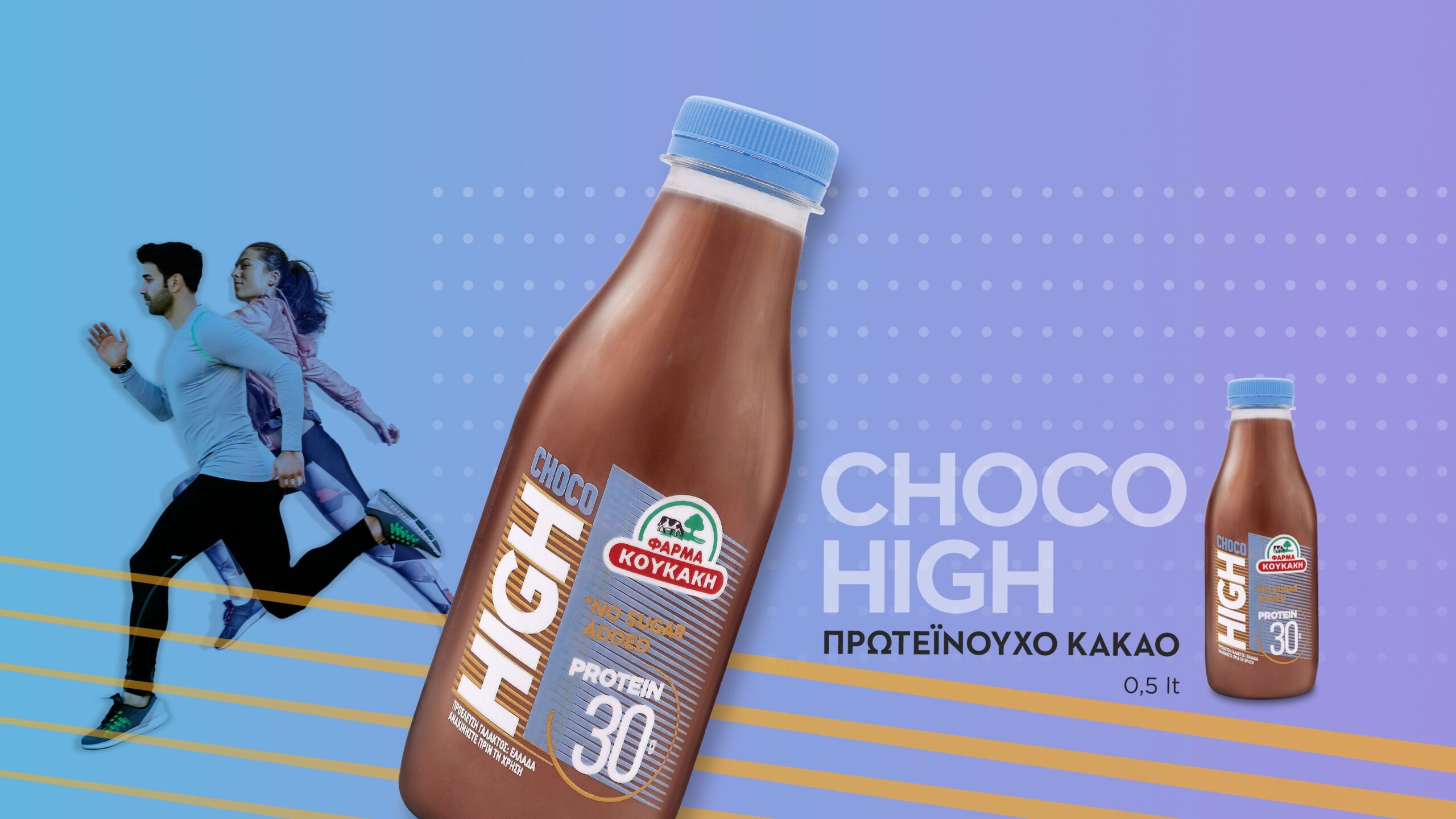 CHOCO HIGH is produced exclusively from fresh Greek milk from Koukakis Farm. Contains a full 30g dose of Protein and is ideal for those watching their diet and those who play sports. A good source of calcium, it contains only 1.5% fat and is made without added sugar.