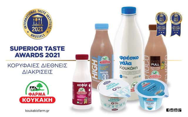 Στις φετινές 17ες αξιολογήσεις του International Taste Institute, βραβεύτηκαν από διεθνώς καταξιωμένους Σεφ και Σομελιέ 2.218 προϊόντα από όλο τον κόσμο, με τη Φάρμα Κουκάκη να ξεχωρίζει μεταξύ των ελληνικών συμμετοχών. Η Φάρμα απέσπασε κορυφαίες διακρίσεις και στα 6 προϊόντα με τα οποία συμμετείχε, αναδεικνύοντας για μία ακόμη χρονιά την άριστη ποιότητα των ελληνικών γαλακτοκομικών προϊόντων.