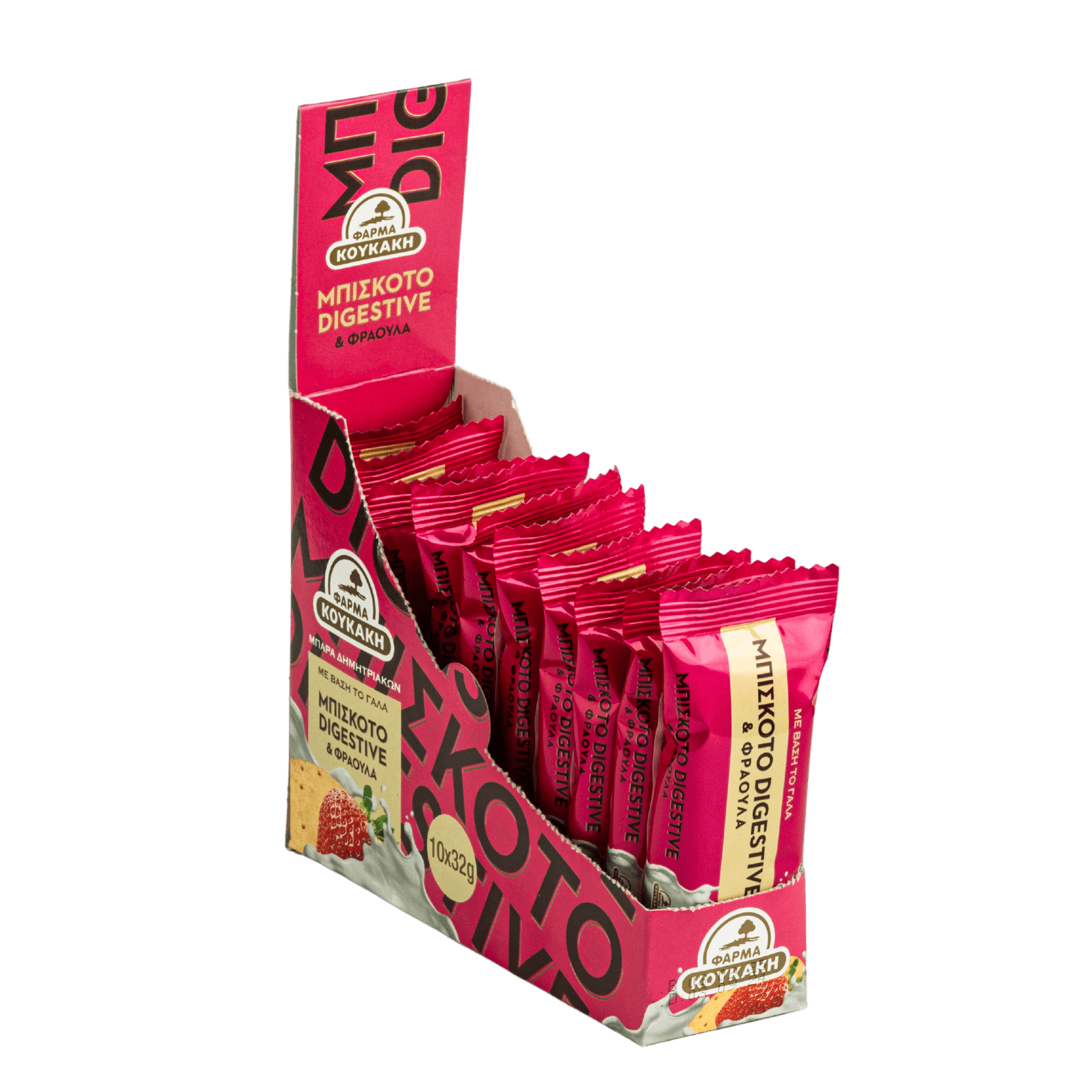 Συνδυασμός της τραγανής υφής του Μπισκότου Digestive με την απολαυστική γεύση της Φράουλας!